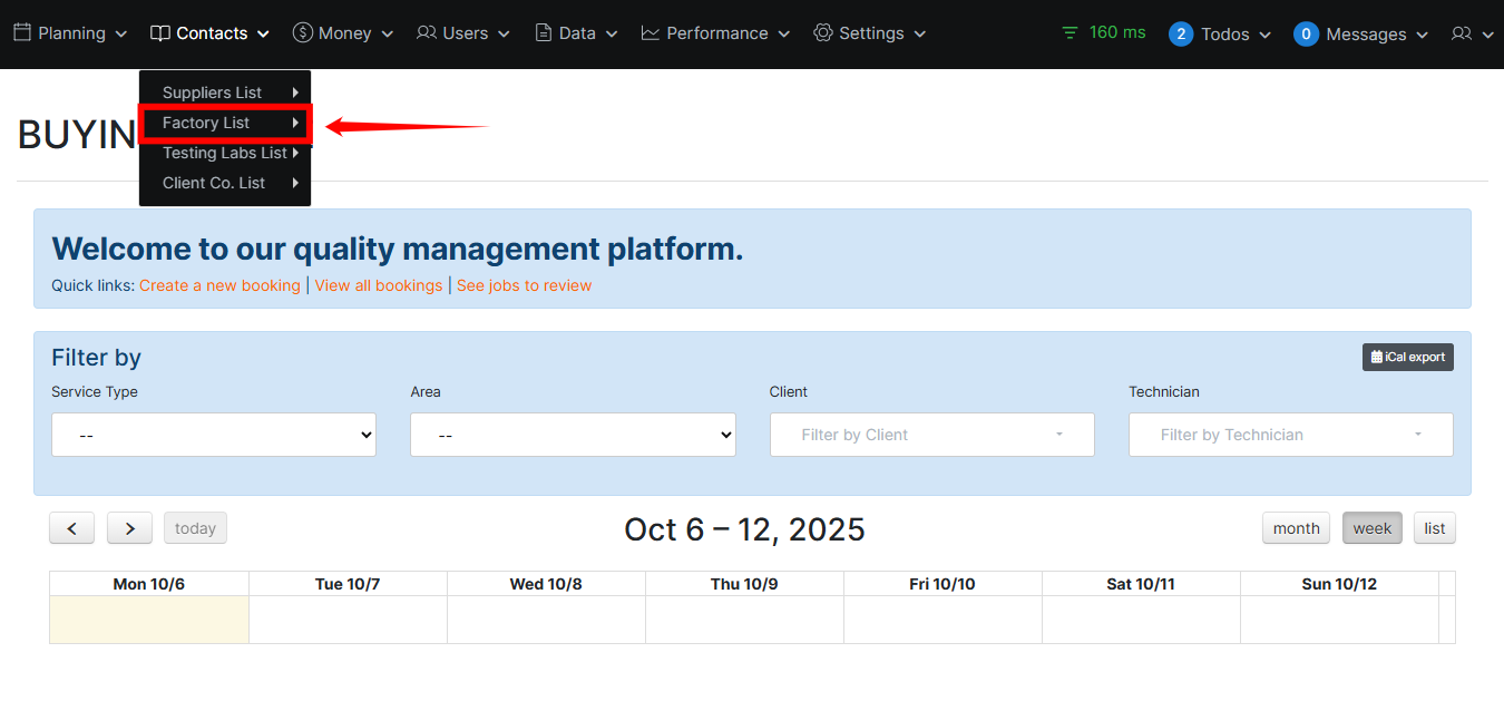 Step 4: Once saved, the factory will appear in the Factory List under Contacts → Factory List.