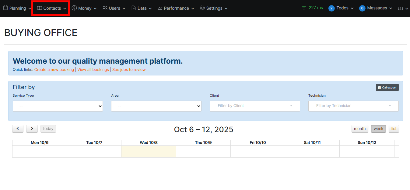Step 1: Log in to your Syncontrol account and click Contacts from the top navigation bar.