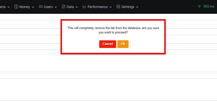 Step 4: Confirm the deletion when prompted. The system will permanently remove the lab’s record.