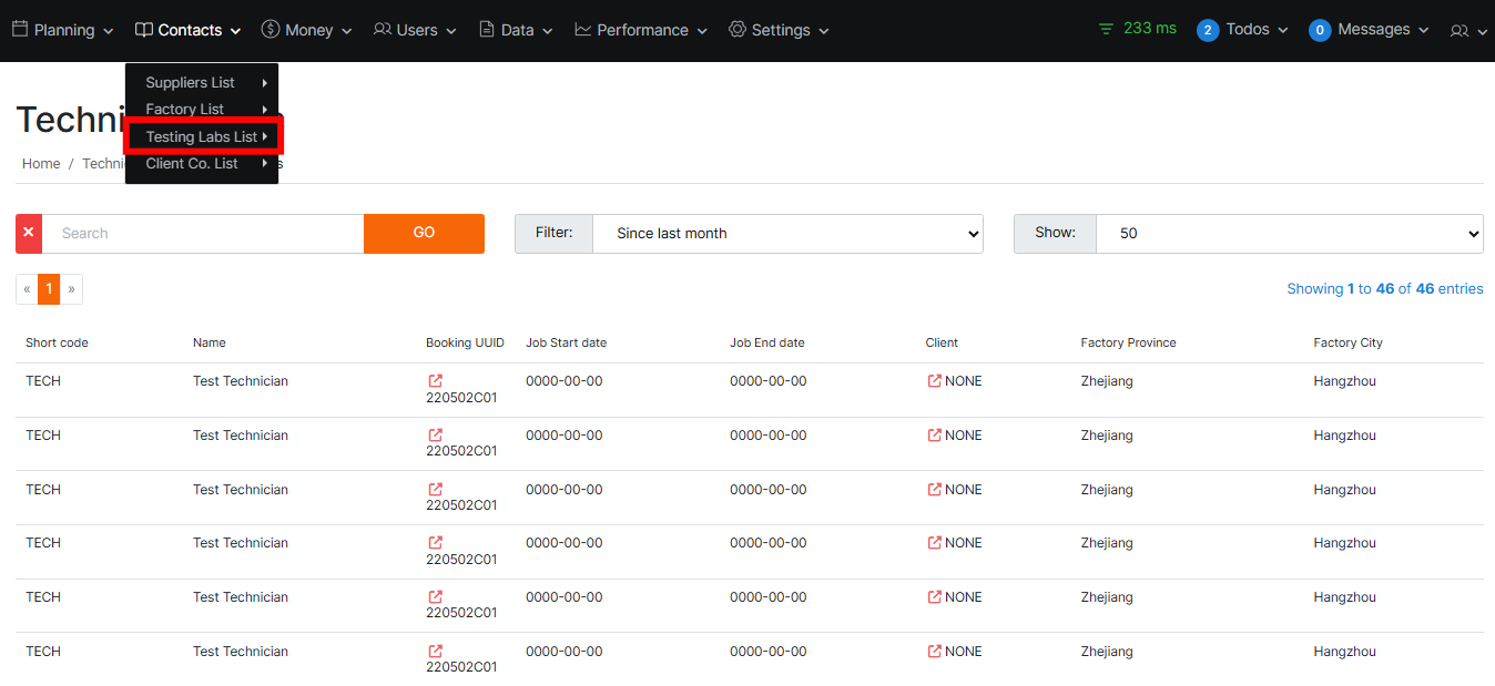 Step 1: Log in to your Syncontrol account and go to Contacts → Testing Labs List.