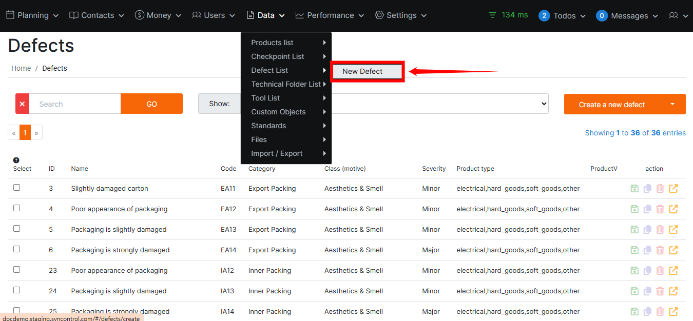 Step 1: From the Defect List page, click on the Create a new defect button located at the top-right of the screen.
