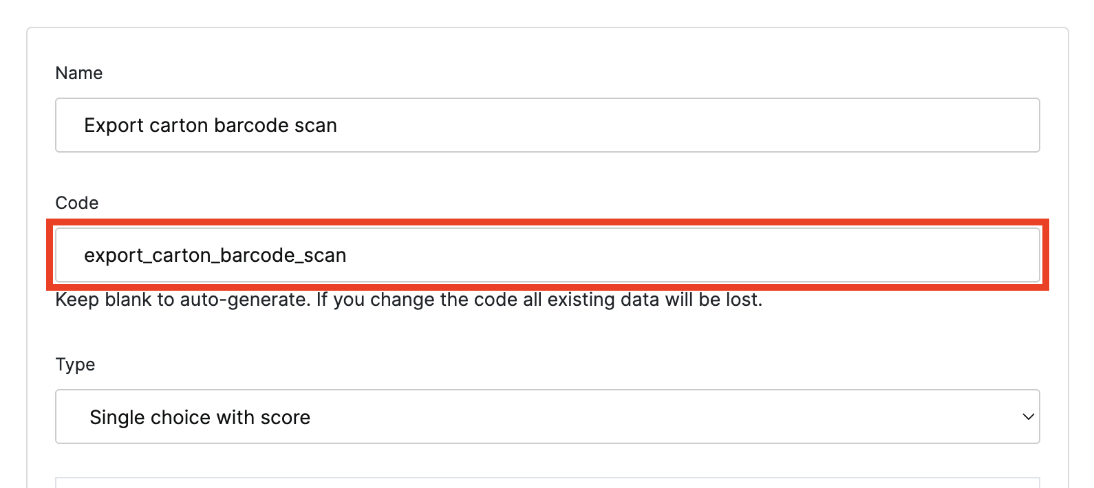| Text Field | Used for free-text data entry. Suitable for recording information like carton numbers, batch codes, or any value that does not need predefined options. |