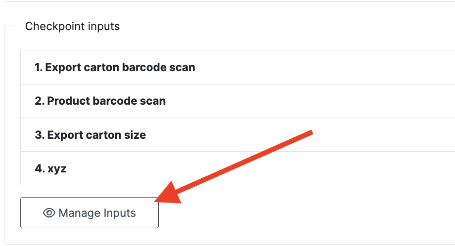 Step 2: Click the Manage Inputs button: This opens the input management panel for the selected checkpoint.