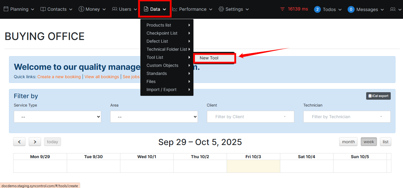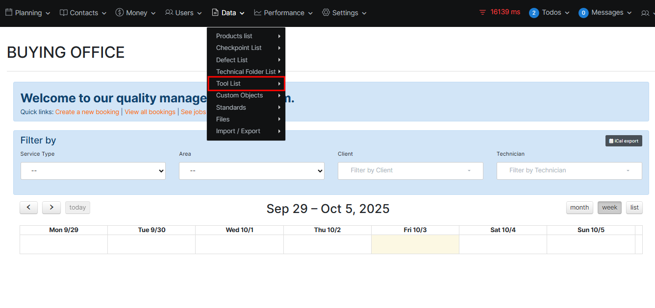 Step 1: Log in to your account and click Data from the top navigation bar, then select “Tool List” from the dropdown menu.