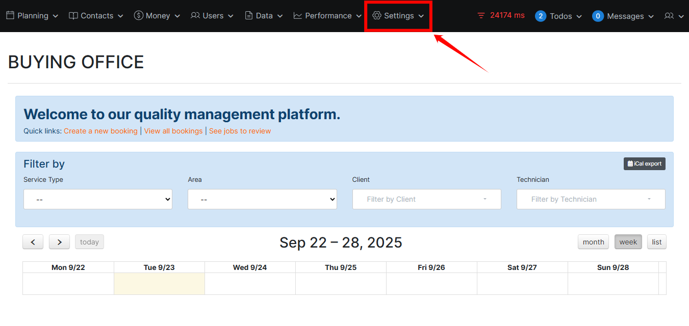Step 1: Log in to your Syncontrol account and click on the “Settings”.