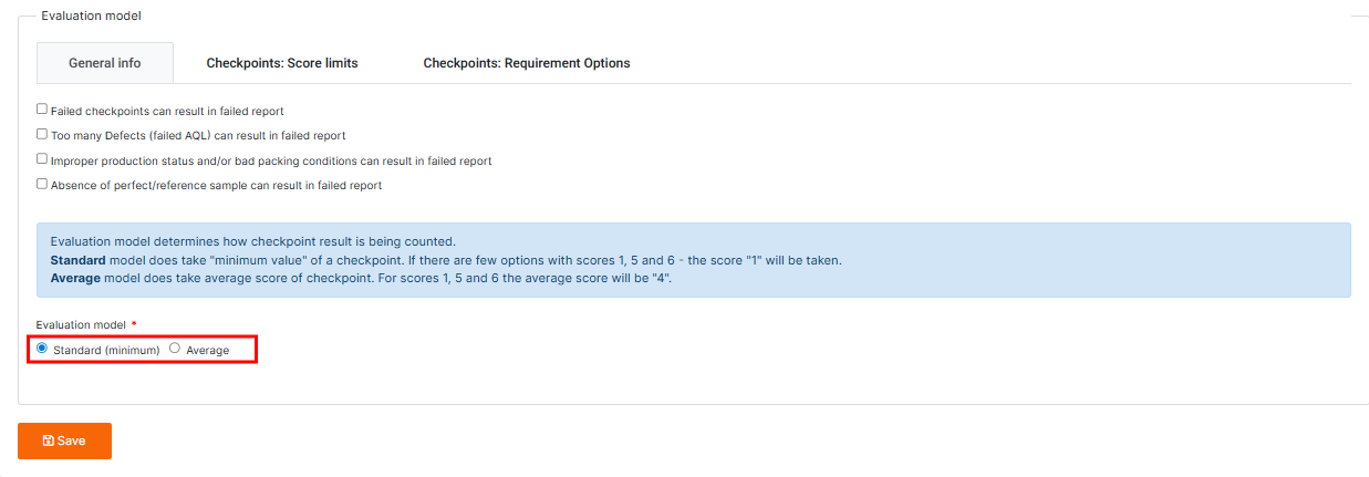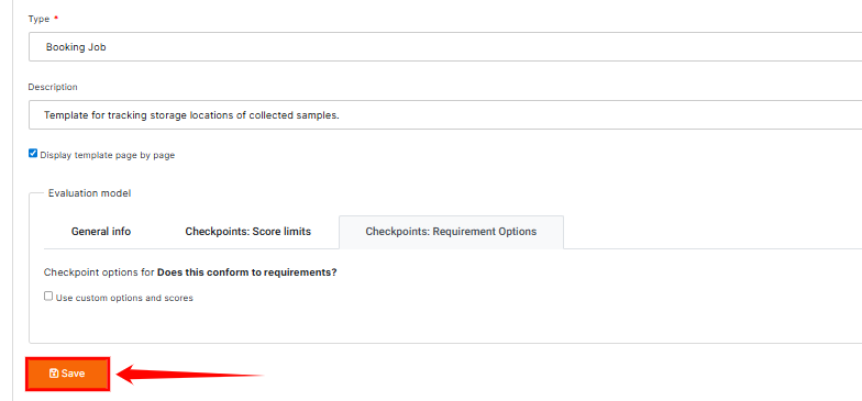 After configuring the custom options and scores, you can save the checkpoint settings by clicking on the “Save” button to apply them to the template.