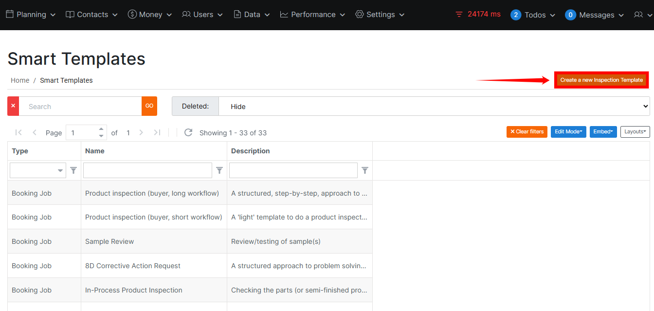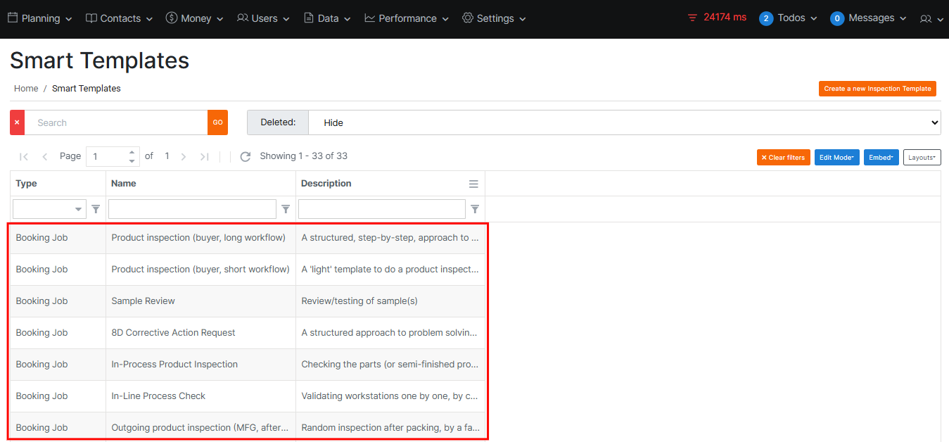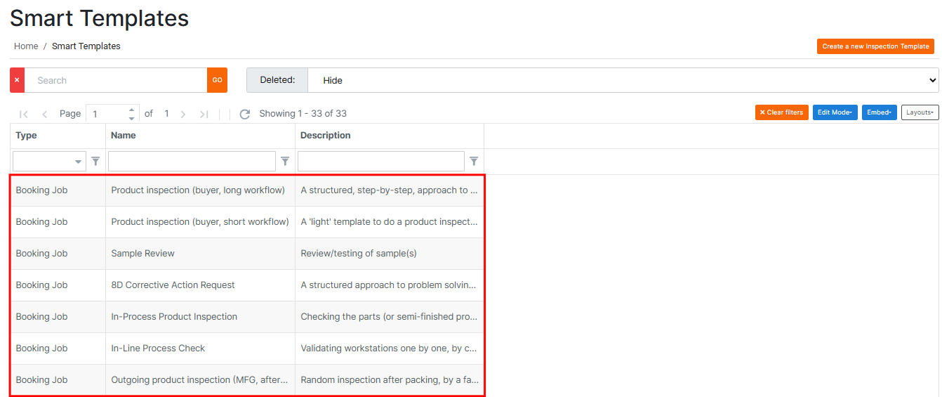 Once you save the inspection template, it will be stored in the system and can be viewed under the Smart Templates page.