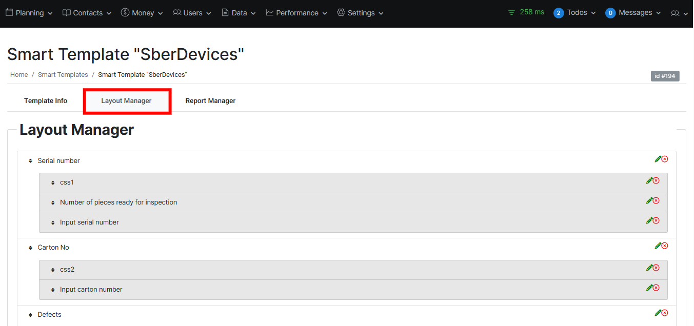 After defining the basic information for your Smart Template, the next steps are to design its structure and configure how the collected data will appear in reports. These two areas are managed through the Layout Manager and the Report Manager.