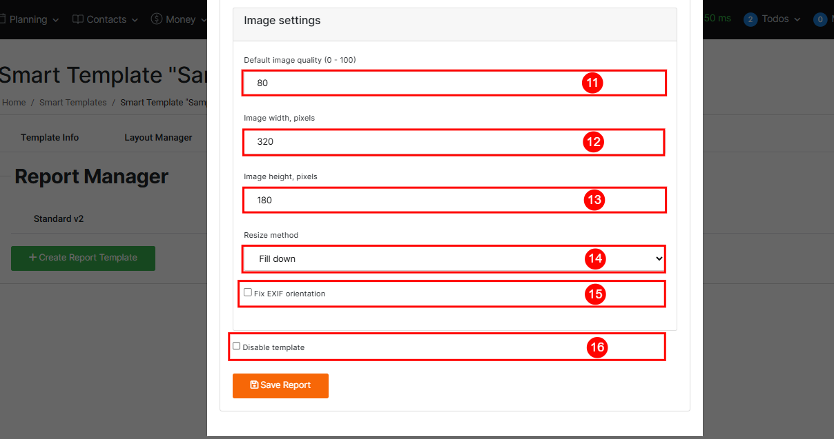 16. Disable Template – Enable this to deactivate the current report template without deleting it. The template will be hidden from use but can be re-enabled later.