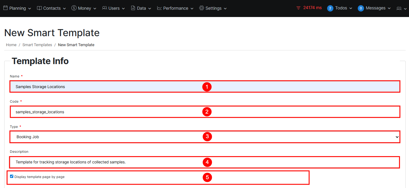 | 1 | Name | Yes | The visible title of the template. This is the name that users will see when selecting or managing templates. It should clearly reflect the purpose of the template. | Samples Storage Locations |